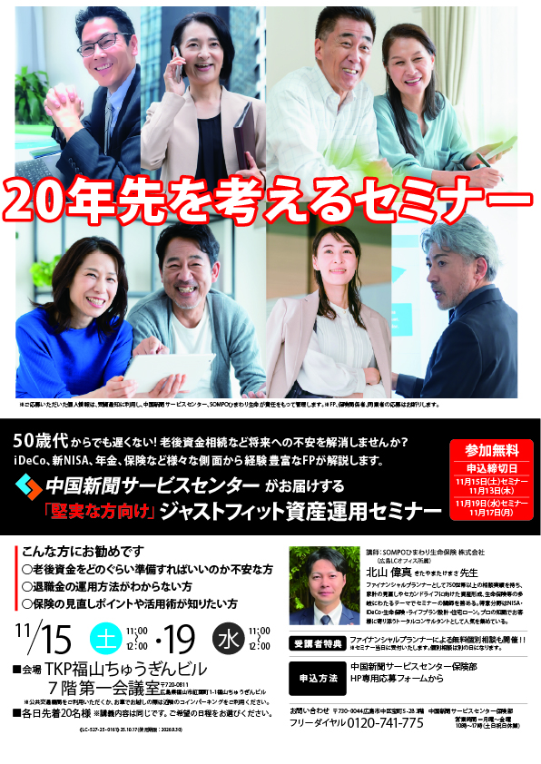 お子さんの独立や病気をしたなど、生活に変化があった際は、保険を見直しが必要です。お近くの「中国新聞販売所」で実施している無料相談会もご活用ください。